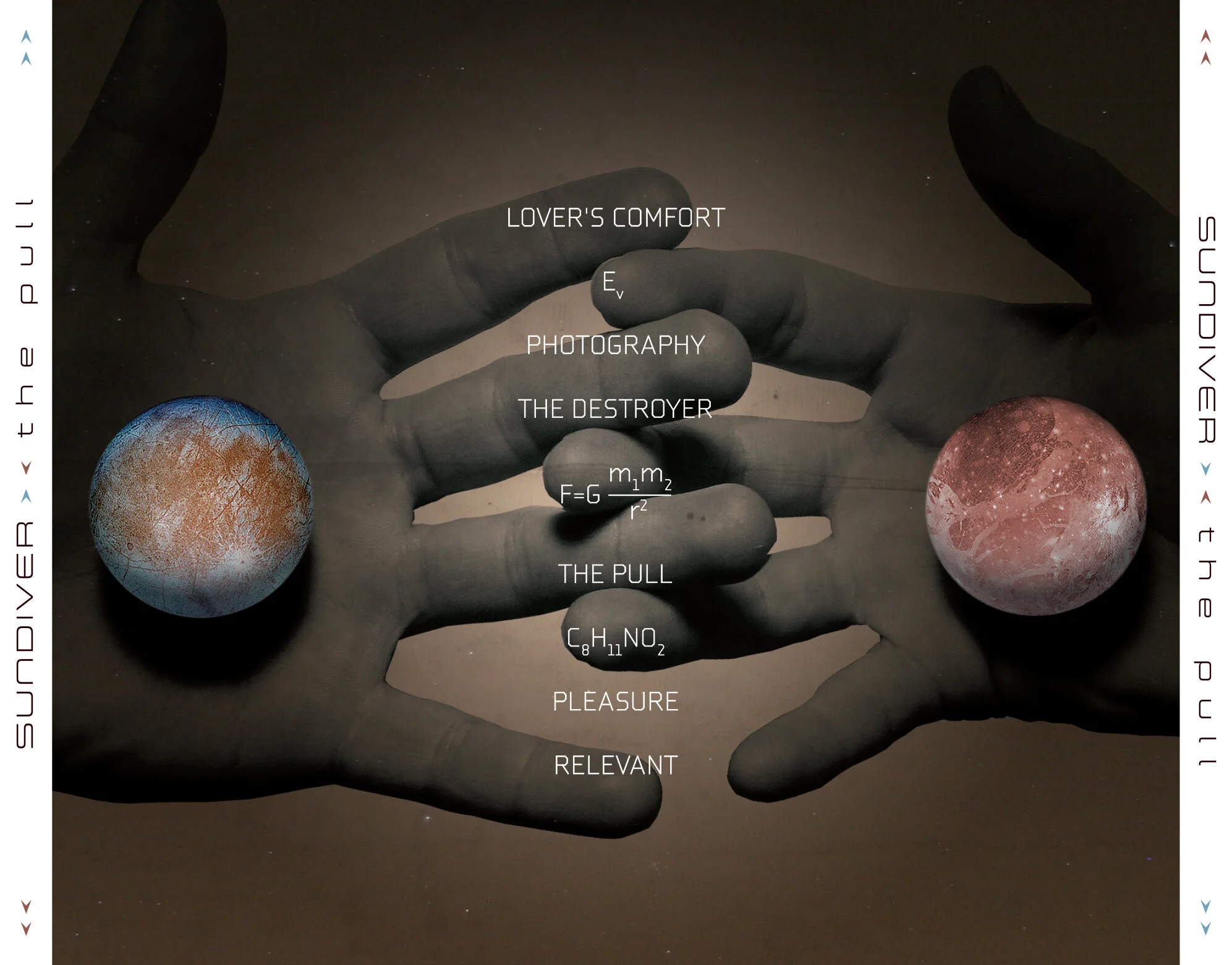 sundiver is a rock band comprised of celestial soundscapes, science fiction story telling and hard driving guitar riffs. design inspiration is pulled directly from song lyrics that deal with recurring themes of relationships and science fiction.